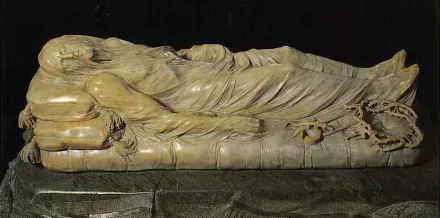 La Capilla de san Severo es del siglo XVI y pronto se convirtió en mausoleo de la nobleza, como se puede ver en las diversas tumbas rodeadas de estatuas que representan las virtudes y otras formas alegóricas, algunas dentro de la masonería. La pequeña iglesia es barroca, de una sola nave, con un mosaico en blanco y negro que simboliza un laberinto. Pero la joya está en el centro: un Cristo yacente del escultor napolitano del siglo XVIII, Giuseppe Sanmartino. La figura de mármol representa Cristo tendido en un colchón con un finísimo sudario encima, liberado ya de la corona de espinas y los clavos, que se conservan a los pies junto con las tenazas. Los pliegues de la tela son tan perfectos y la transparencia del cuerpo es tan real, que uno diría que la tela también es real. Todo el cuerpo es de una perfección tan absoluta que te deja sin aliento. La figura tiene la boca entreabierta y se le marca la vena de la frente y la marca de los clavos en manos y pies. Impone respeto y silencio contemplarlo y se crea una atmósfera de misterio. Ayuda mucho que esté prohibido sacar fotos y que haya unos guardias que vigilan con rigor que todo esté en orden.