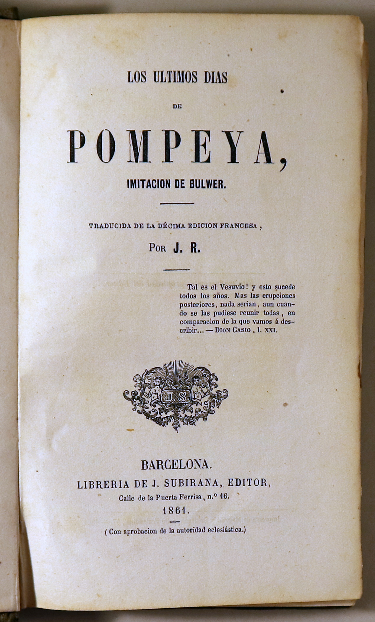 Barcelona, Librería de J.Subirana, Editor, 1861. Traducida de la décima edición francesa por J.R. Cona lámina grabado en la anteportada y un pequeño grabado en la portada 283 p. 8º. Tela con dorados encuadernada por el antiguo propietario. Un poco desgastado. Buen ejemplar.