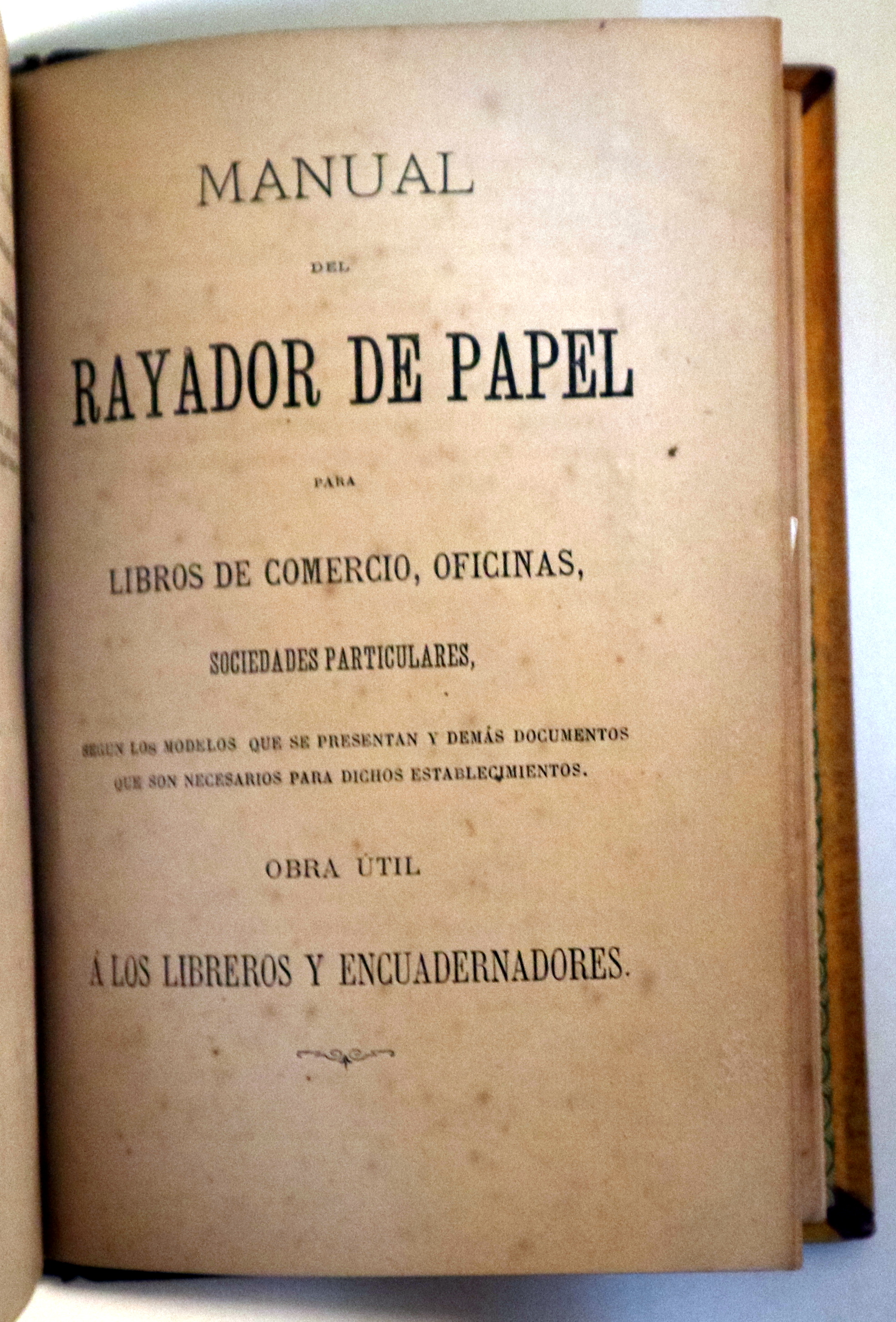 Barcelona, Edit. Manuel Saurí, 1883. Manual completo del encuadernador teórico y práctico. Descripción de las máquinas y procedimientosmodernos y antiguos. Contiene el modo de alzar, satinar, glasear, plegar, coser, cortar, encuadernar de varias maneras, jaspear y dorar los cortes y las pieles,. Aumentado con el arte del rayador de papel para libros de comercio. Tercera edición. 3 láminas ilustradas desplegables. 308 p. 8º. Holandesa algo deslucida. Dorados. Puntos de óxido en algunas hojas. Buen ejemplar. Raro