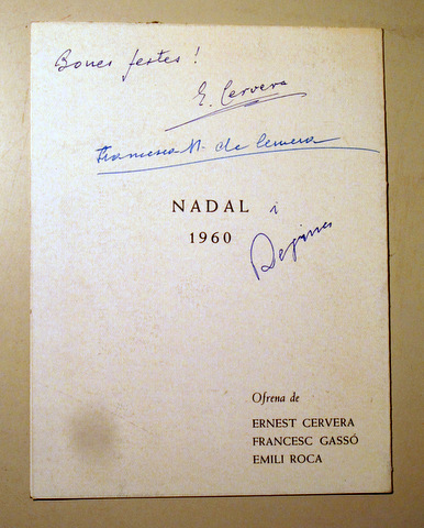 FELICITACIÓ DE NADAL amb text d'Emili Roca, Dibuix de Francesc Gassó i firma d'Ernest Cervera - 1960