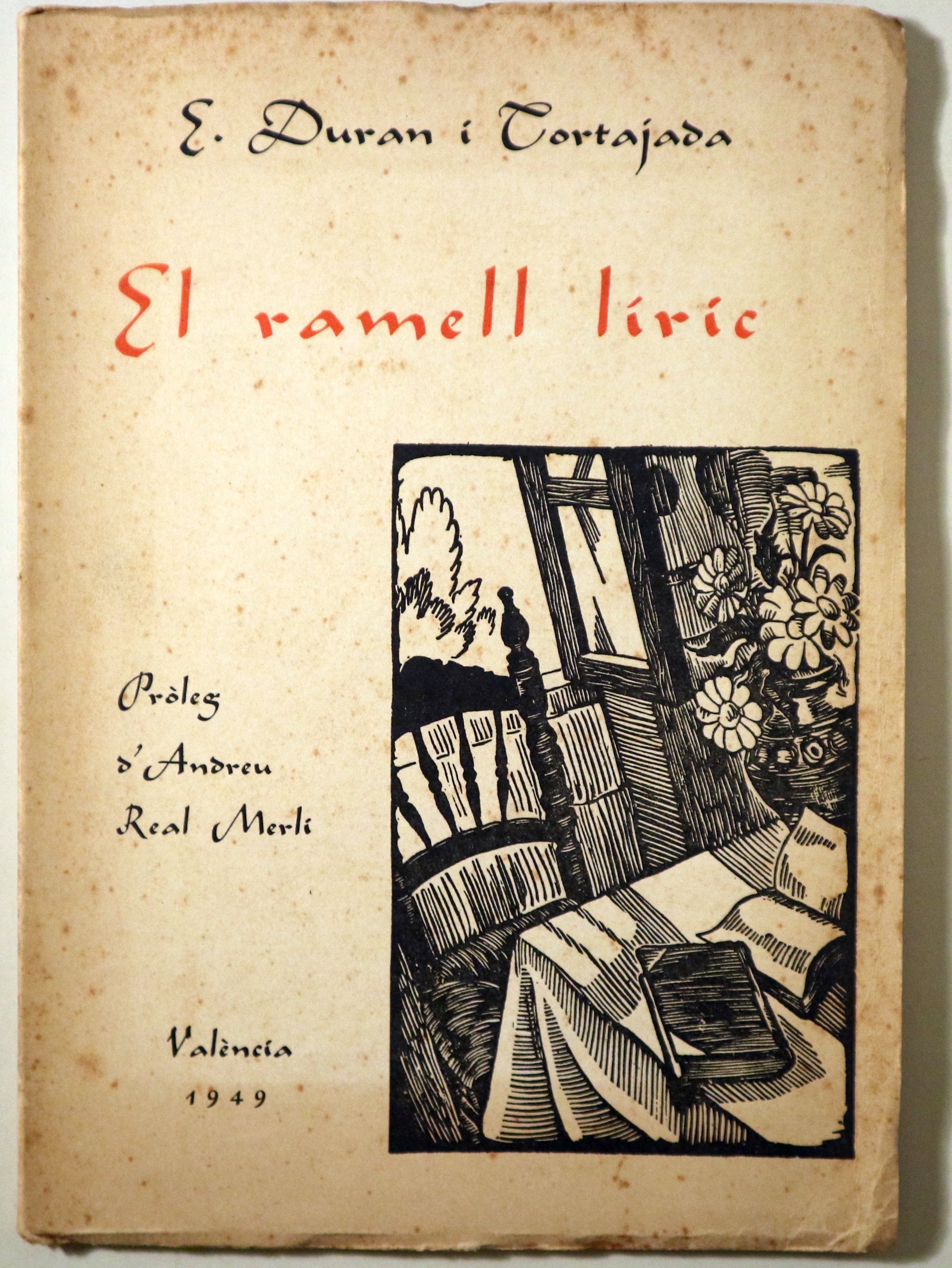 València, Edit. Tallers Tipografia Moderna, 1949. Pròleg Andreu Real Merlí. 66p. 8è major. Rústica editorial il·lustrada, un pèl gastat. Interior en bon estat. Bon exemplar. 1ª edició. 1st edition.