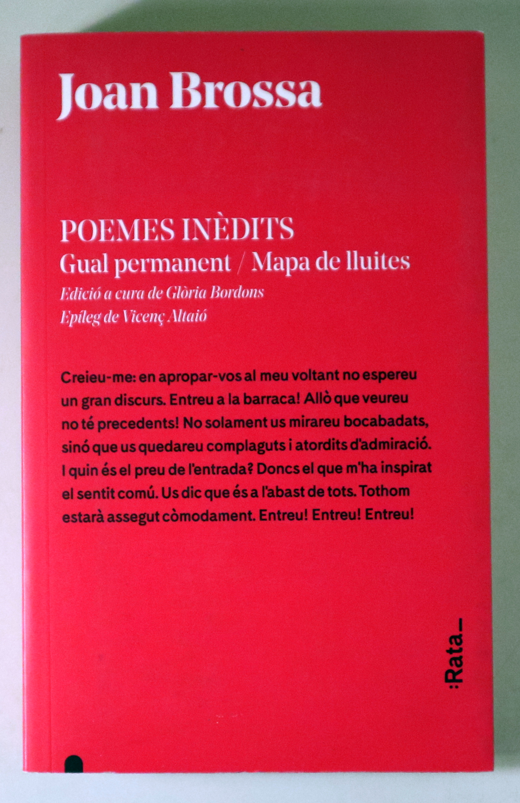 Barcelona, Rata, 2017. Edició a cura de Glòria Bordons. Epíleg de Vicenç Altaió. 303 p. 8è. Rústica editorial amb solapes. Molt bon exemplar, impecable. 1a edició. 1st edition.