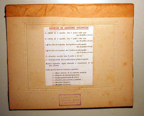 MODELOS DE ASADORES MECÁNICOS - Barcelona s/f - Ilustrado