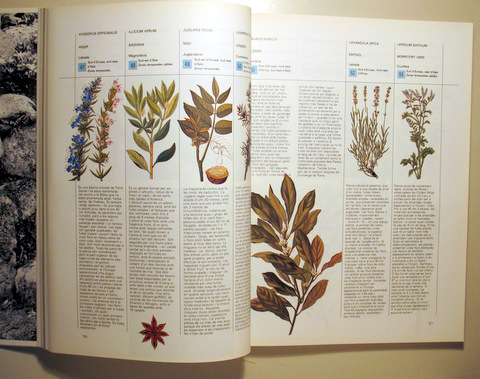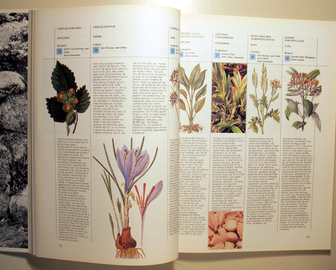 Barcelona, Edit. Blume, 1983. Herbes i espècies. Guia pràctica il·lustrada. Nombroses il·lustracions, gravats i fotografies a color i en b/n. 189p. Rústica editorial il·lustrada. Molt bon exemplar. erbes i espècies es una guia pràctica i il lustrada. El llibre esta dividit en diferents seccions de referència: La tria de les vostres herbes i espècies, Lèxic de plantes, De l'hort a la cuina, Creixement i tractament, L'art de condimentar, Cuinant amb herbes i espècies, i Condiments del món.