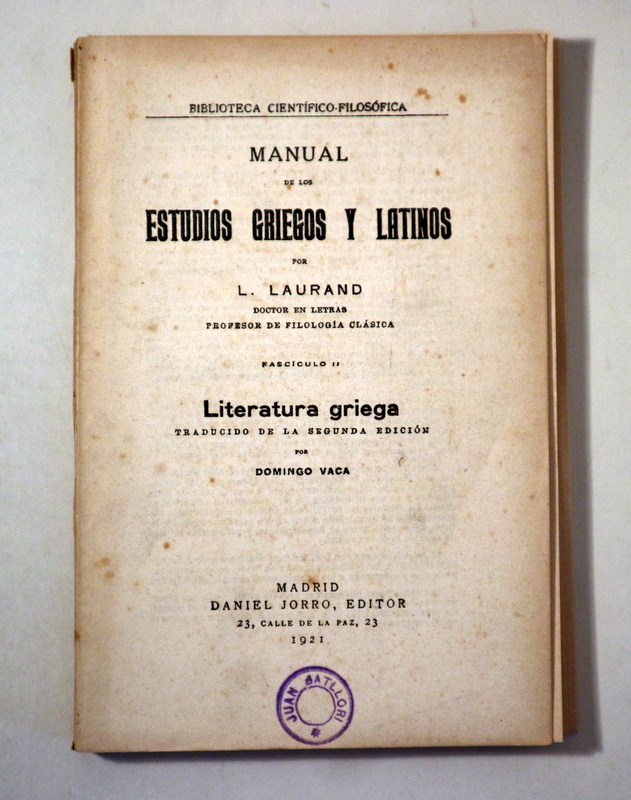 Madrid, Daniel Jorro, Editor, 1921. Biblioteca Científico-Filosófica. s/p. 8º mayor. Rústica editorial. Sello de caucho en la cubierta. Algunas manchas de óxido en la cubierta. Algunas páginas desprendidas pero conservadas. Un poco desgastado. Buen ejemplar.