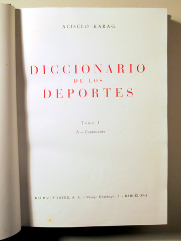 DICCIONARIO DE LOS DEPORTES tomo I: A - Carregadet - Barcelona 1958 - Muy ilustrado