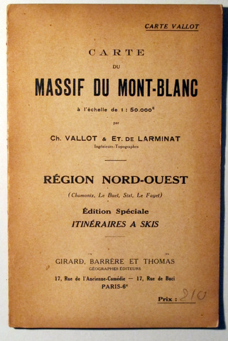 CARTE DU MASSIF DU MONT-BLANC. Region Nord-ouest - Paris 1946 - Mapa