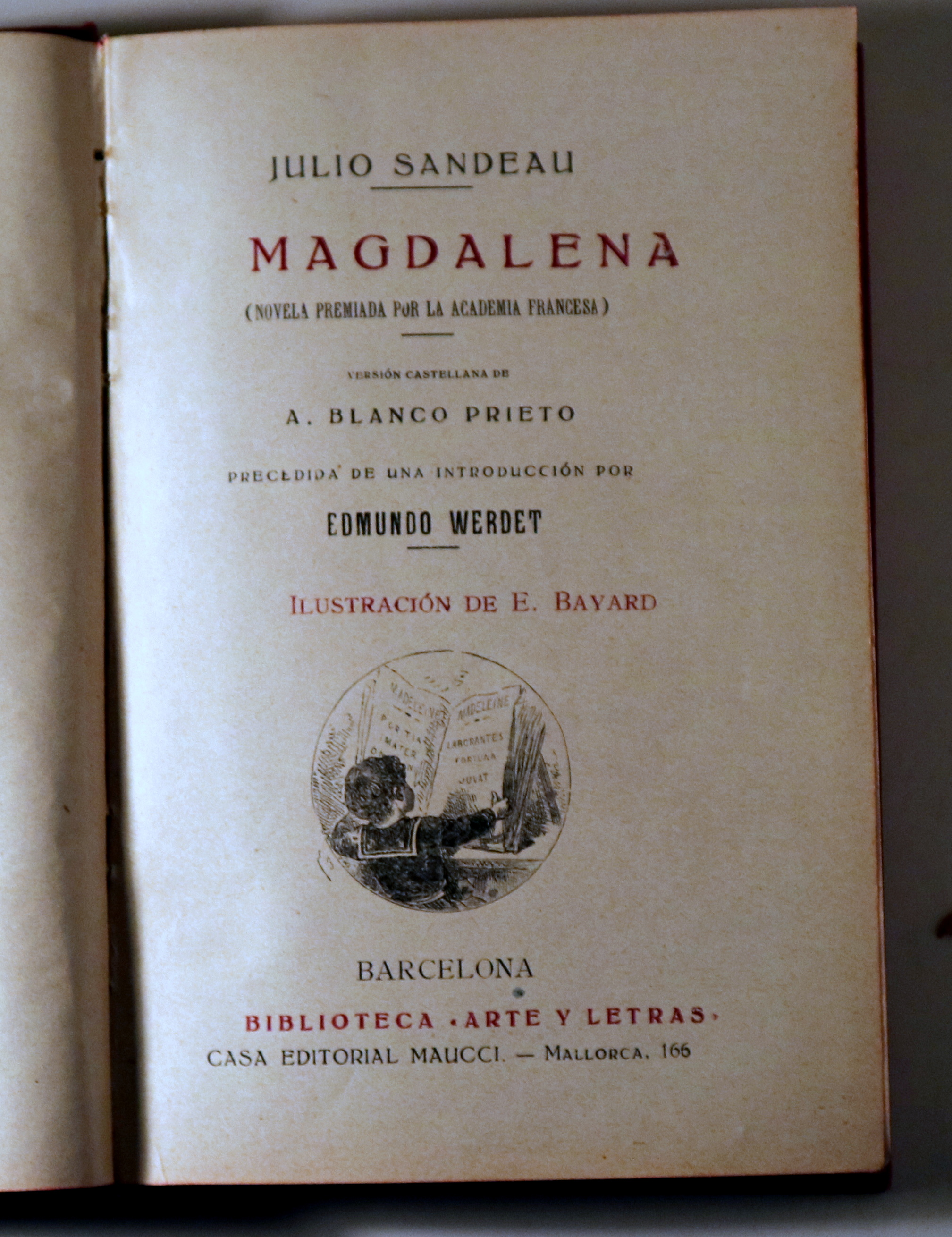 Barcelona, Casa Editorial Maucci, s/f. Biblioteca Arte y Letras.Versión castellana de A. Blanco Prieto. Introducción de Edmundo Werdet. Ilustraciones en b/n de E. Bayard. 280 p. 8º. Tela editorial ilustrada con dorados y bordes coloreados. Desgaste leve. Buen ejemplar.