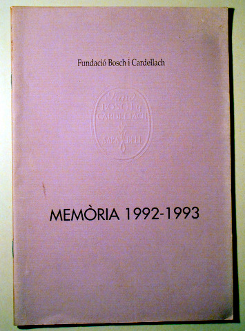 FUNDACIÓ BOSCH I CARDELLACH. MEMÒRIA 1992-1993 - Sabadell 1993