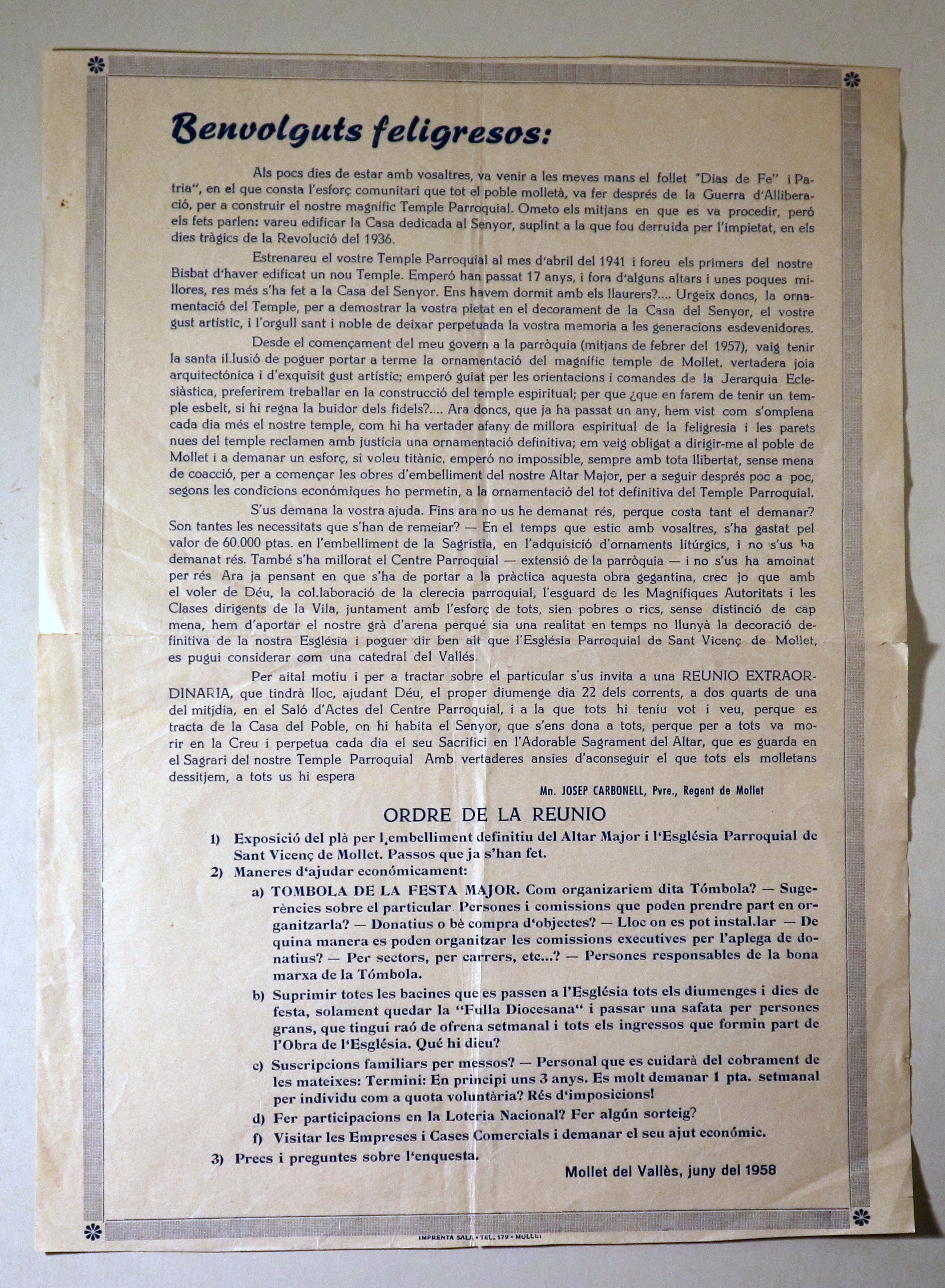 BENVOLGUTS FELIGRESOS - Mollet 1958