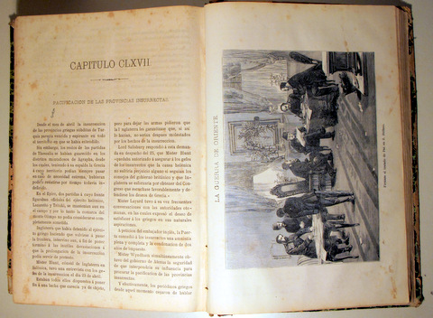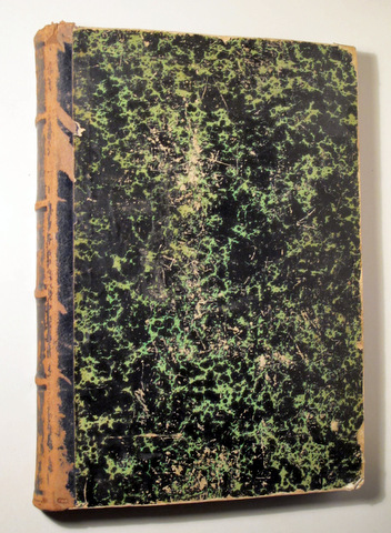 Barcelona, Edit. Juan Pons, 1877. Por un distinguido español emigrado. Magníficos grabados intercalados en el texto y láminas tiradas aparte. 575p. cada tomo aprox. Folio. Pasta española rozada. Lomo de piel con hierros, rozada. Numerosas hojas restauradas con celp (ver fotografías), lo que no impide la lectura.