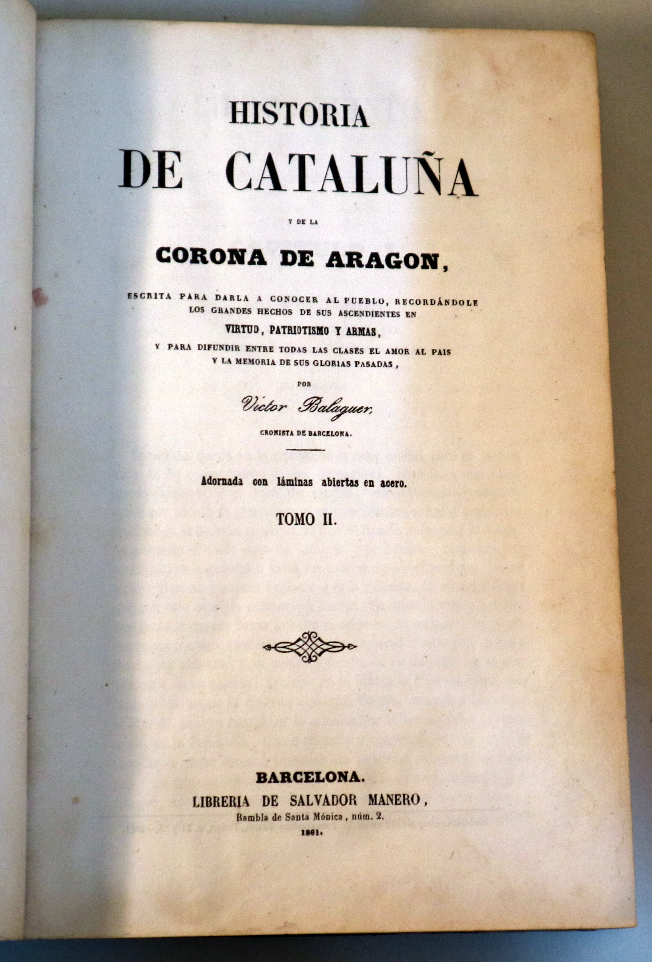 HISTORIA DE CATALUÑA y de la corona de Aragón. Vol II - Barcelona 1861 - Ilustrado