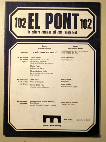 Barcelona, Edit. Miquel Artimany, S.A. Algunas ilustraciones en b/n fuera texto. 24 p. 8è. Rústica editorial il·lustrada. Molt bon exemplar. Crítiques de llibres de Quim Monzó, Comadira i Benet i Jornet per Jordi Galceran, Esteve Miralles i Joan Simon.