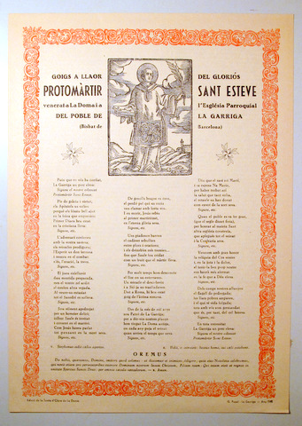 GOIGS A LLAOR DEL GLORIÓS PROTOMÀRTIR SANT ESTEVE - La Garriga 1960