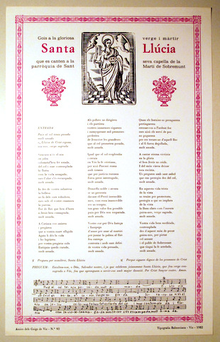 GOIGS A GLORIOSA VERGE I MÀRTIR SANTA LLÚCIA - Vic 1982