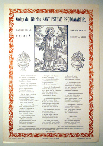GOIGS DEL GLORIÓS SANT ESTEVE PROTOMÀRTIR - Vic 1963