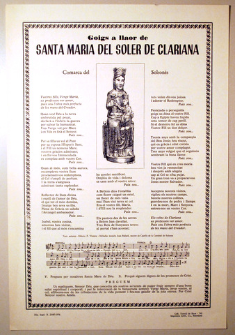 GOIGS A LLAOR DE SANTA MARIA DEL SOLER CLARIANA - Barcelona 1976