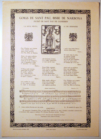 GOIGS DE SANT PAU, BISBE DE NARBONA - Barcelona 1957