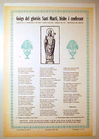 GOIGS AL GLORIÓS SANT MARTÍ, BISBE - Barcelona 1960