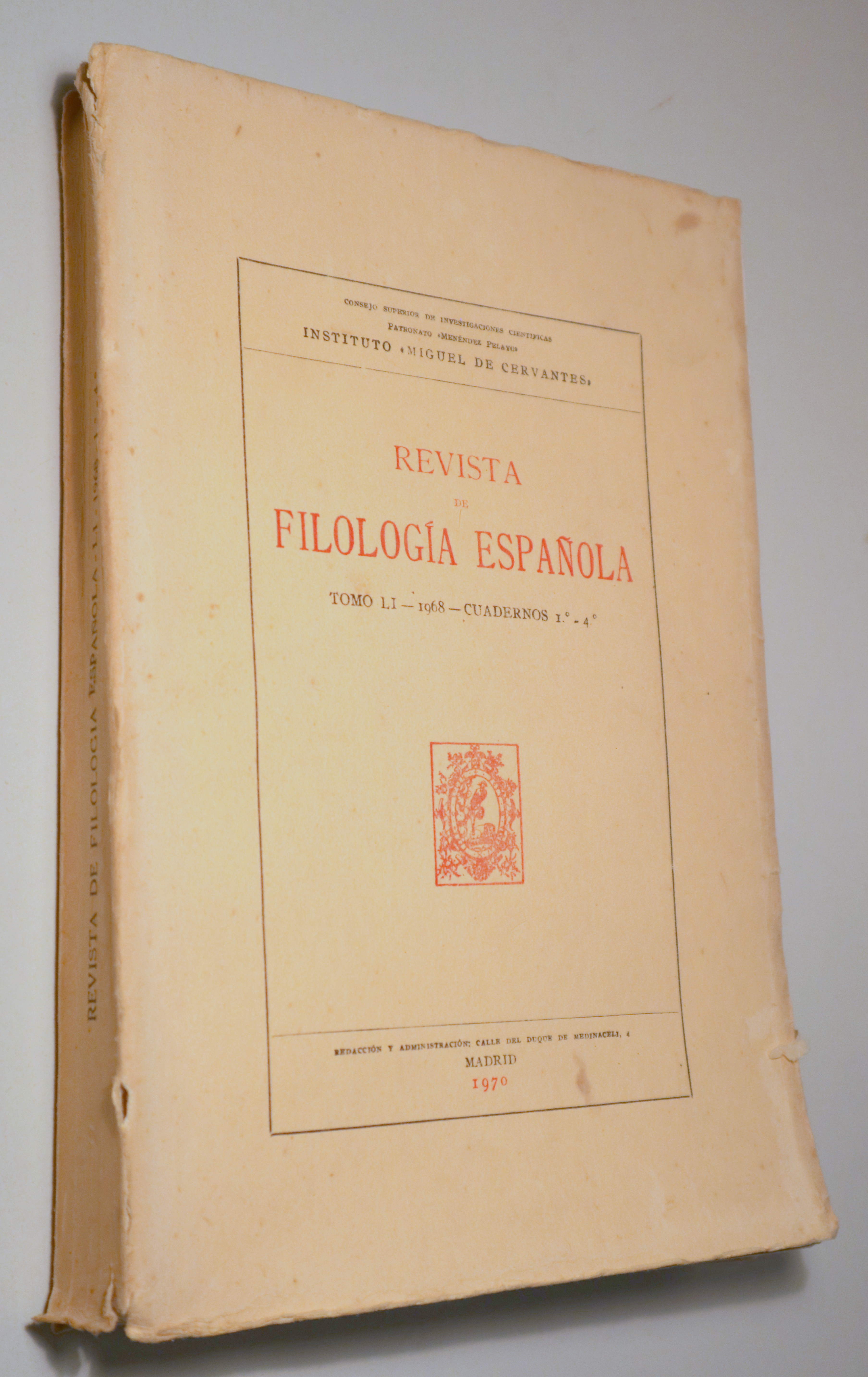 REVISTA DE FILOLOGÍA ESPAÑOLA. Tomo LI Cuadernos 1º-4º - Madrid 1972