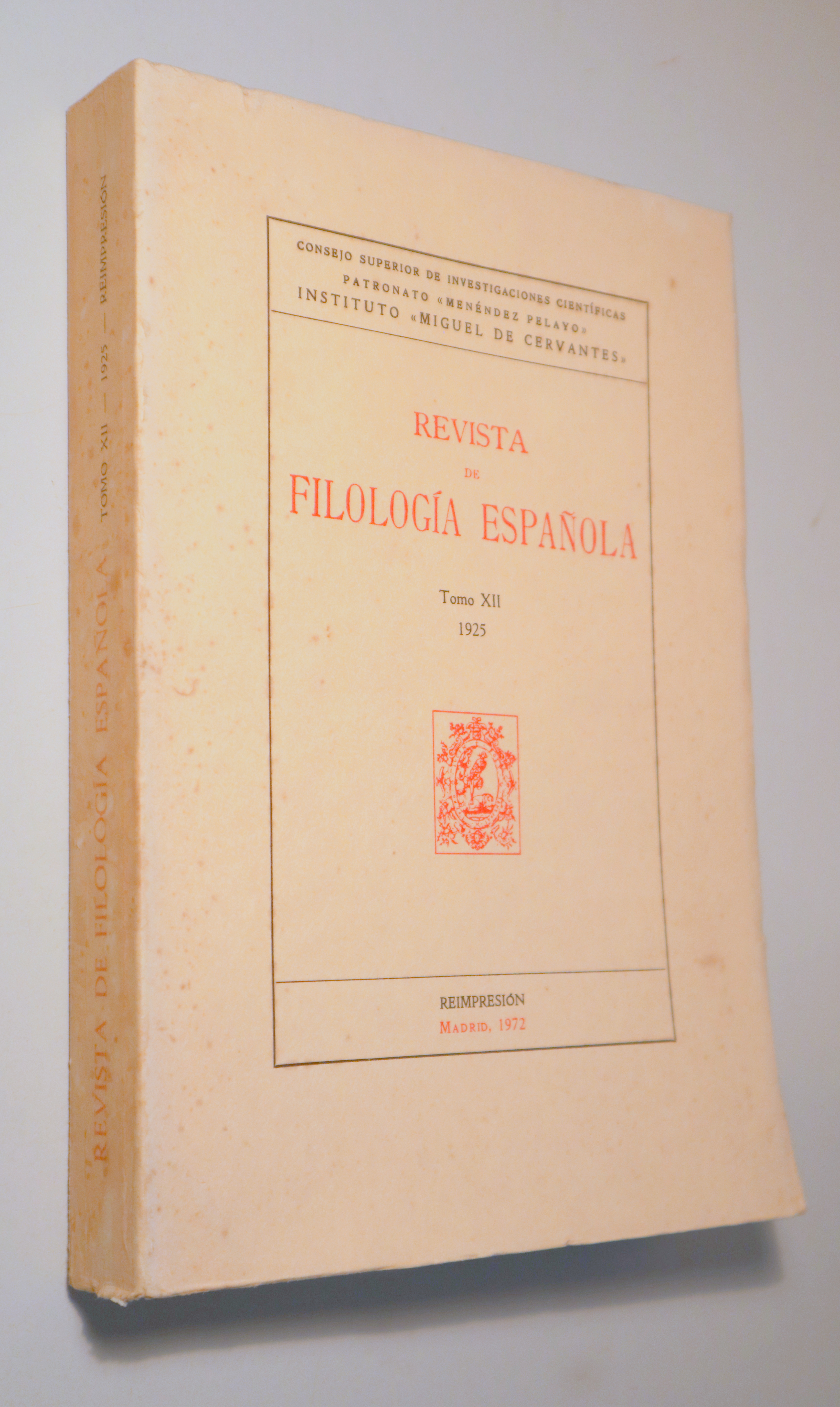 REVISTA DE FILOLOGÍA ESPAÑOLA. Tomo XII 1925 - Madrid 1972 - Reimpresión