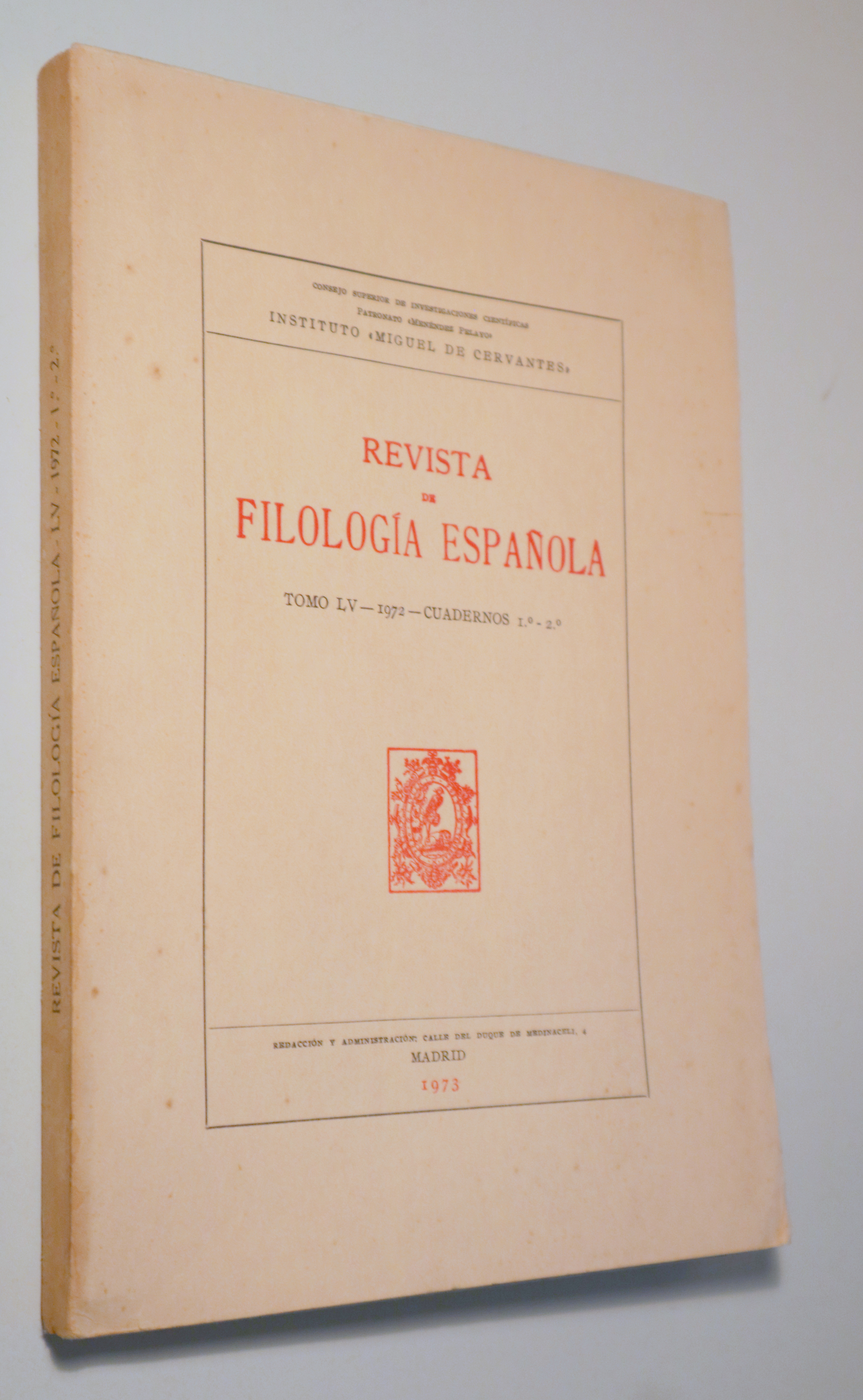 REVISTA DE FILOLOGÍA ESPAÑOLA. Tomo LV 1972. Cuadernos 1º-2º - Madrid 1973