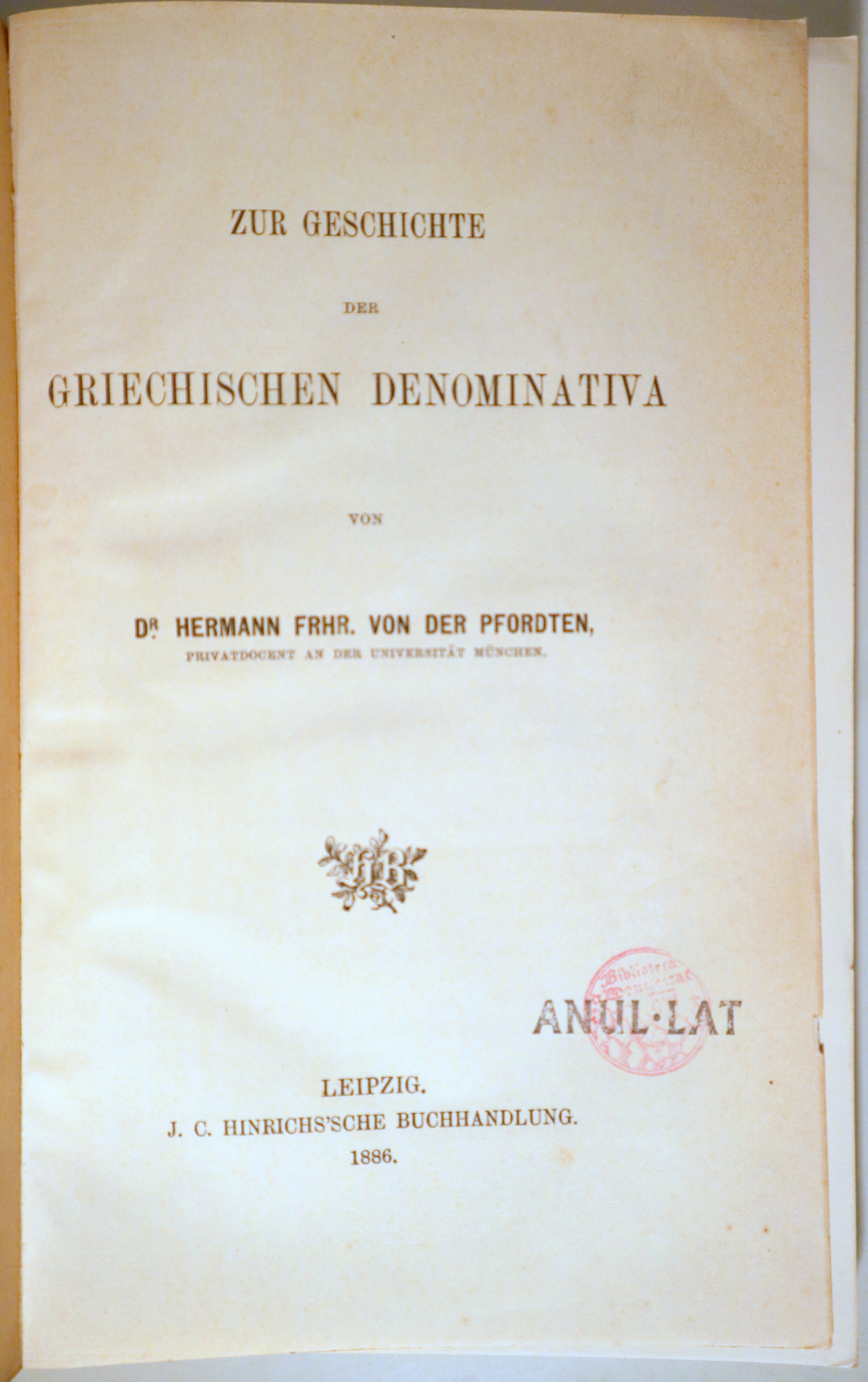 ZUR GESCHICHTE DER GRIECHISCHEN DENOMINATIVA - Leipzig 1886