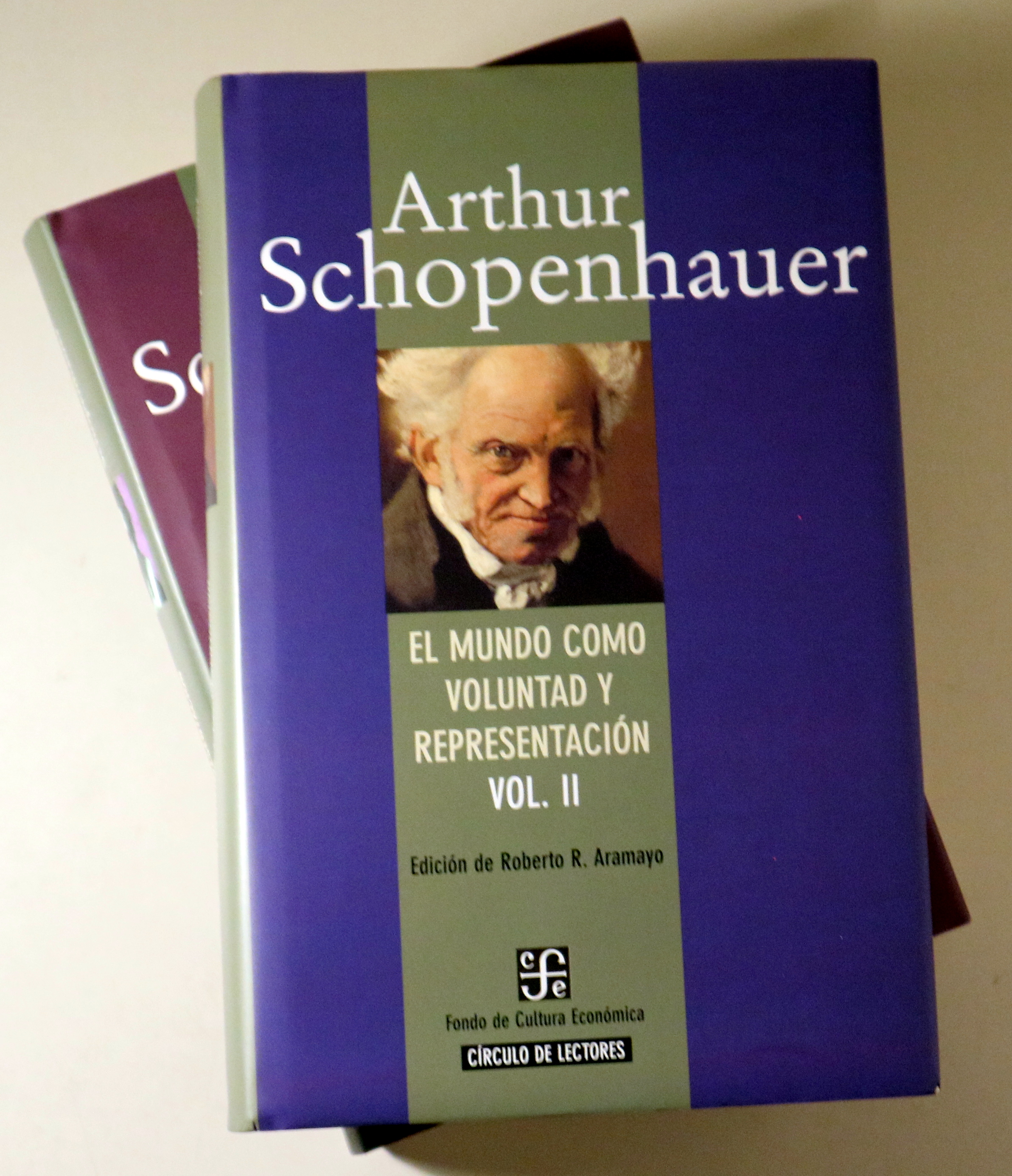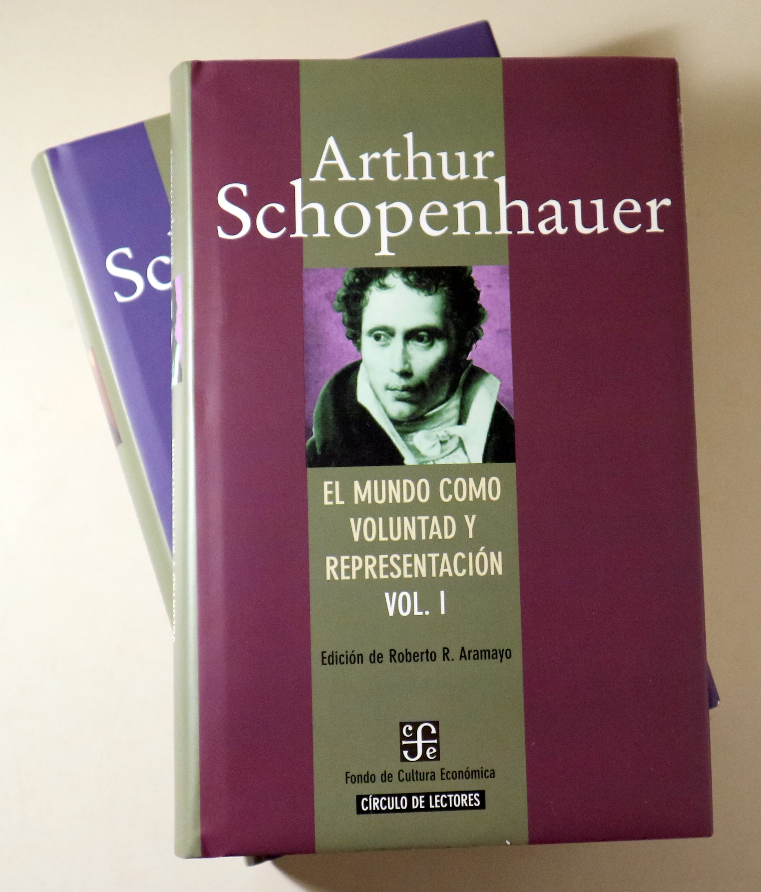 Barcelona, Círculo de lectores, 2003. Edición Roberto Aramayo. 640p. Cada volumen aprox. 8º mayor. Cartoné editorial con sobrecubierta ilustrada. Muy buen ejemplar. Traducción, introducción y notas de Roberto R. Aramayo. Se trata de la edición de El mundo como voluntad y representación de Círculo de Lectores. 643+630 páginas. El primer volumen contiene los Cuatro Libros y el Apéndice que integraron la primera edición de 1819 y recoge también las adiciones que incorporó en las ediciones posteriores. El segundo volumen recoge los Complementos a los Cuatro Libros elaborados para la segunda edición de 1844.