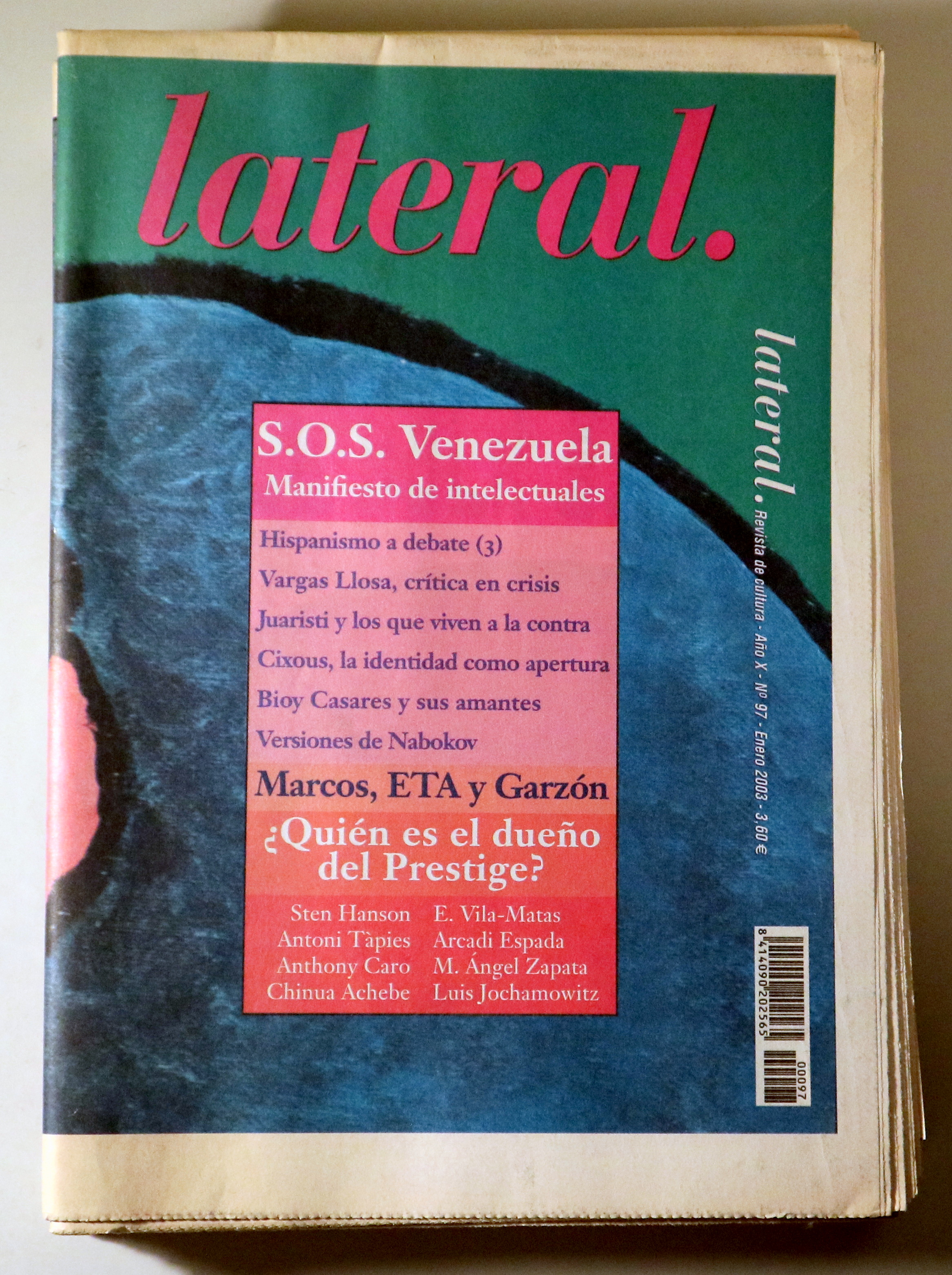 Barcelona, Lateral Ediciones, 2003. Año X, Nº 97. Ilustraciones y fotografías en b/n. 45 p. Gran folio. Rústica editorial ilustrada. Desgaste leve. Buen ejemplar. W.G. Sebald. Auden contra Marañón. Versiones de Wittgenstein, Poesías de Juan Gelman y Arnau Pons.Guerín en construcción. Etc.