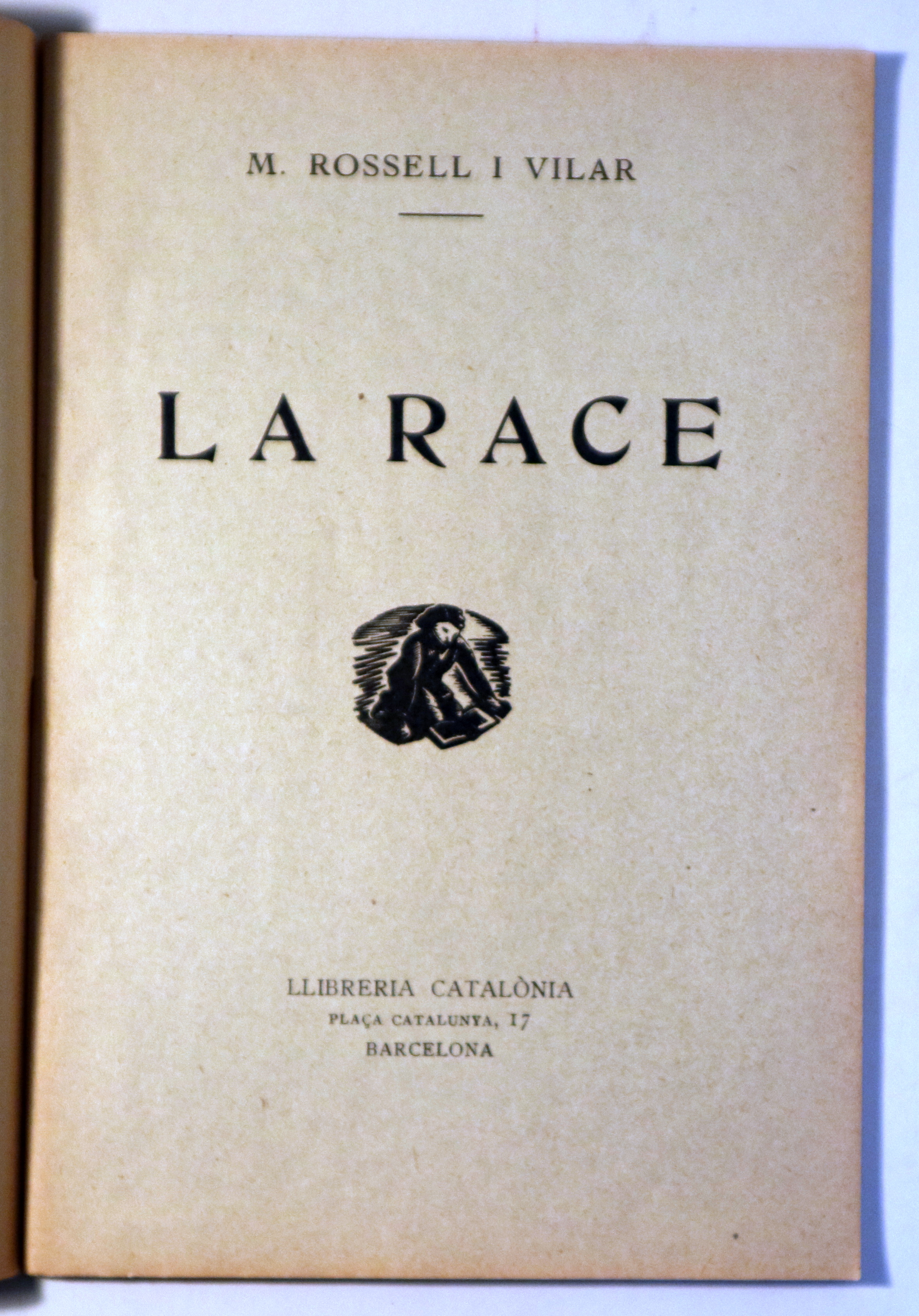 BBarcelona, Edit. Lib. Catalonia, s/f. "La langue catalane étant peu répandue, l'auteur a pensé faire un auto-compte-rendu de son oeuvre". 51p. 8º mayor. Rústica editorial muda con leves puntos de óxido. Interior en buen estado. Livre en français. Buen ejemplar. Curiosa teoria *raciològica*, que no *racista*. Preconitza una organització política mundial basada en les races, però antiimperialista, és a dir, fonamentada en la llibertat i igualtat de totes elles.