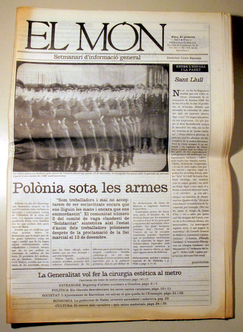 Barcelona, Edit. El món, 1981. Dir Lluís Bassets. Nombroses il·lustracions en b/n. 47p. Gran foli plegat. Rústica editorial il·lustrada. Molt bon exemplar. Primer número d'aquesta revista en català del final de la transició, amb col·laboracions, entre d'altres, de Joan Fuster, Joan de Sagarra, Lluís Permanyer (sobre Gabriel Ferrater), Francesc Parcerisas, Joan Solà, sobre la mort de Sanchis Guarder,