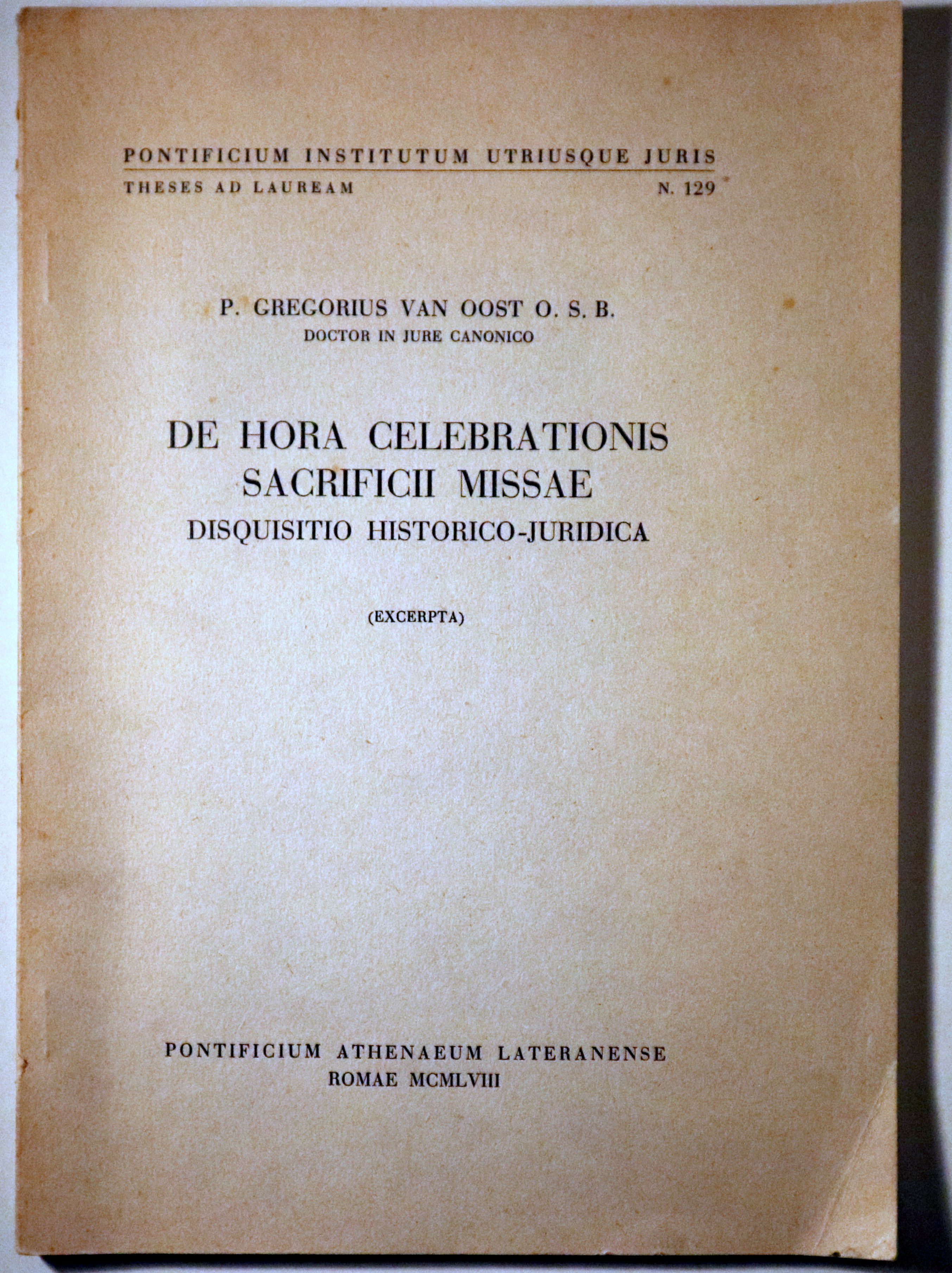 DE HORA CELEBRATIONIS SACRIFICII MISSAE. Disquisitio historico-juridica (excerpta) - Roma 1958