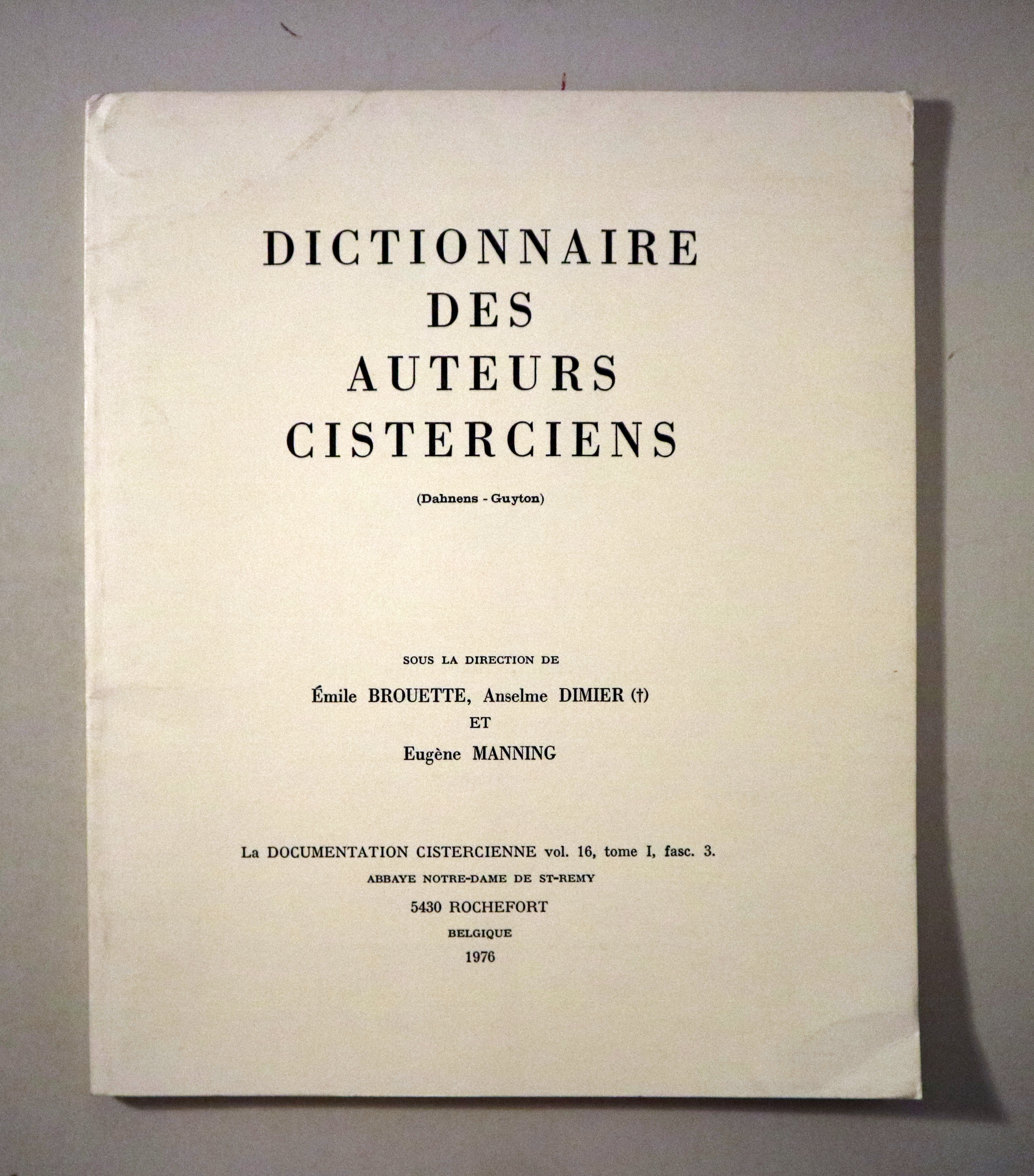 DICTIONNAIRE DES AUTEURS CISTERCIENS. La documentation cistercienne vol. 16 tome I, fasc. 3 - Rochefort 1976