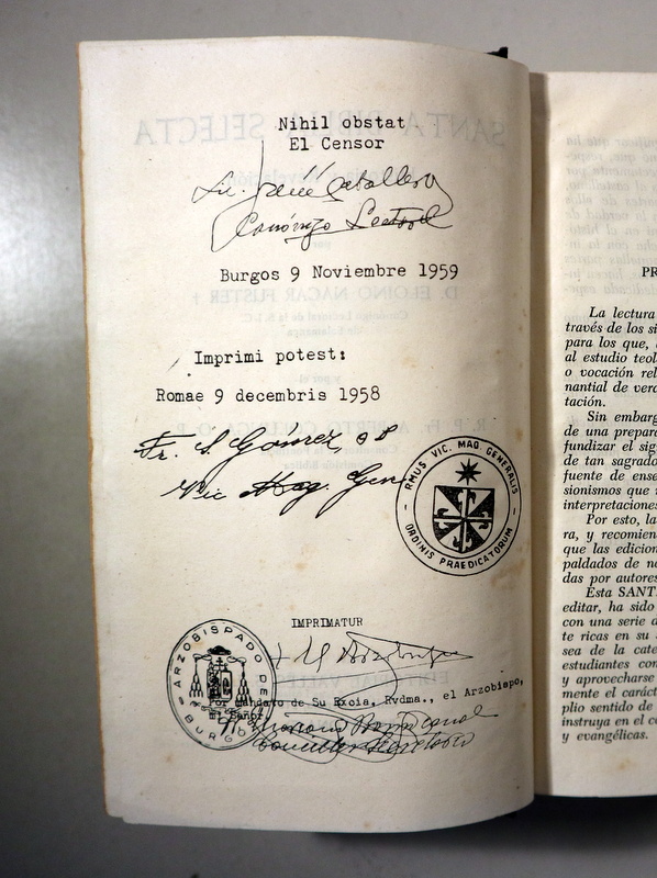 Barcelona,Editorial Valles, 1960. Por D. Eloino Nacar Fuster y R. P. Fr. Alberto Colunga. 1127 p. 8º. Tela editorial con dorados. Papel Biblia. Ex-libris. Algunas manchas de óxido. Un poco gastado. Buen ejemplar.