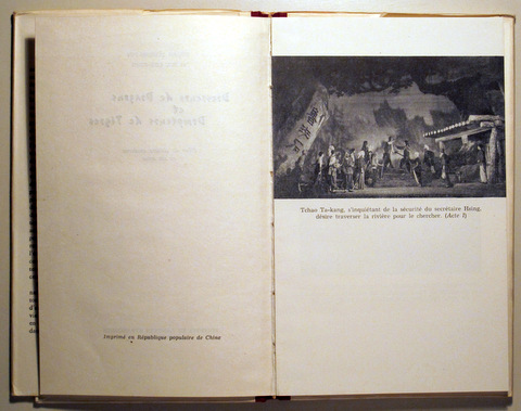Pequín, Edit. En Langues Etrangeres, 1961. Pièce de théatre moderne en six actes. 10p. 2h. 8º mayor. Cartoné editorial ilustrado con sobrecubierta ilustrada. Puntas de la sobrecubierta algo gastadas. Fotografías en b/n f/t. Muy buen ejemplar. 1ª edición. Primera edición. 1st edition. First edition