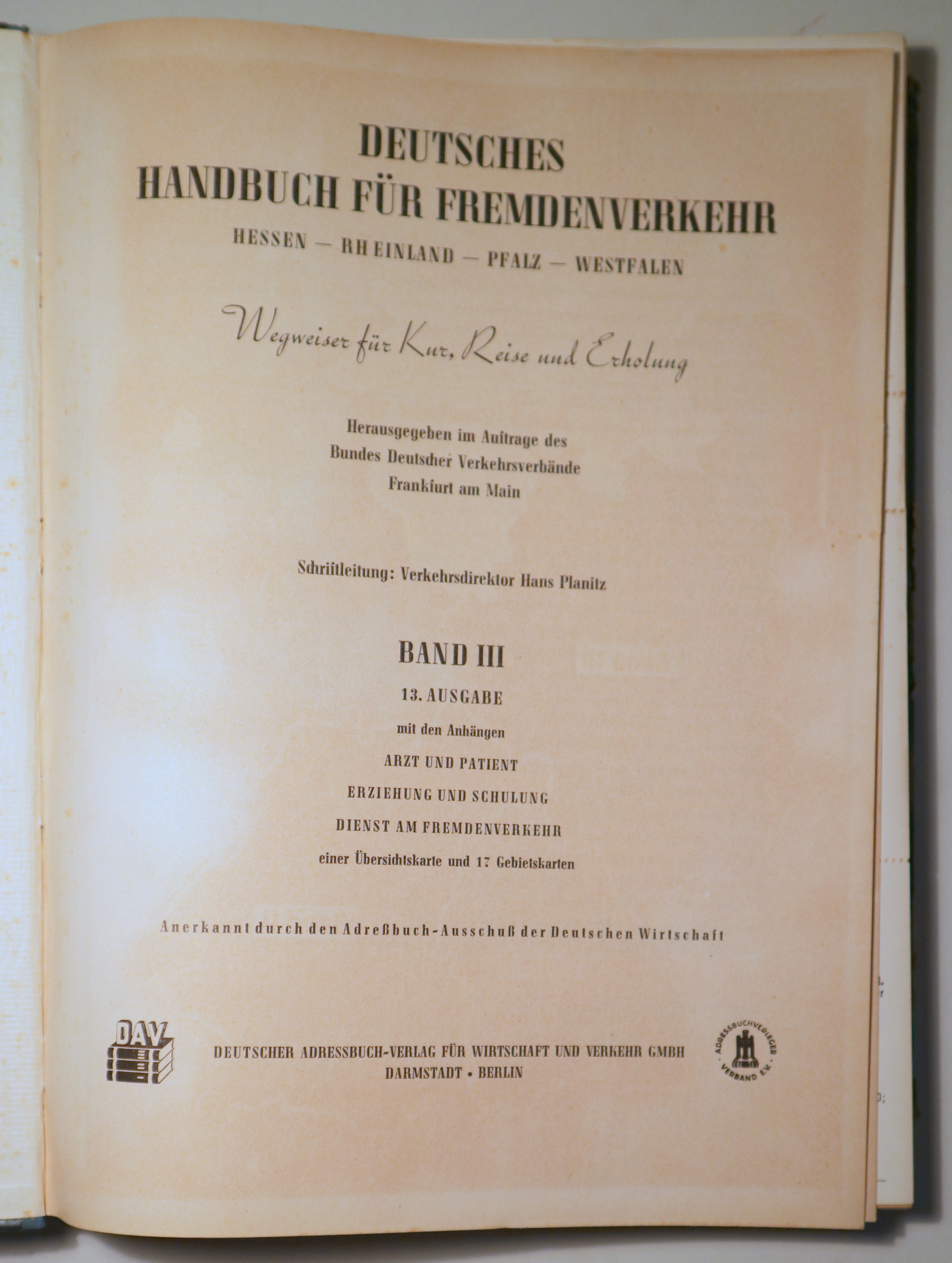 Berlin, Edit. Deutscher Adressbuch, 1952. Hessen, Rheinland, Pfalz, Westfalen. Numerosas fotografías en color y negro. 494p. Folio. Holandesa editorial ilustrada. Bordes algo rozados. Leves manchas de agua en algunas páginas. Book in German. Buen ejemplar.