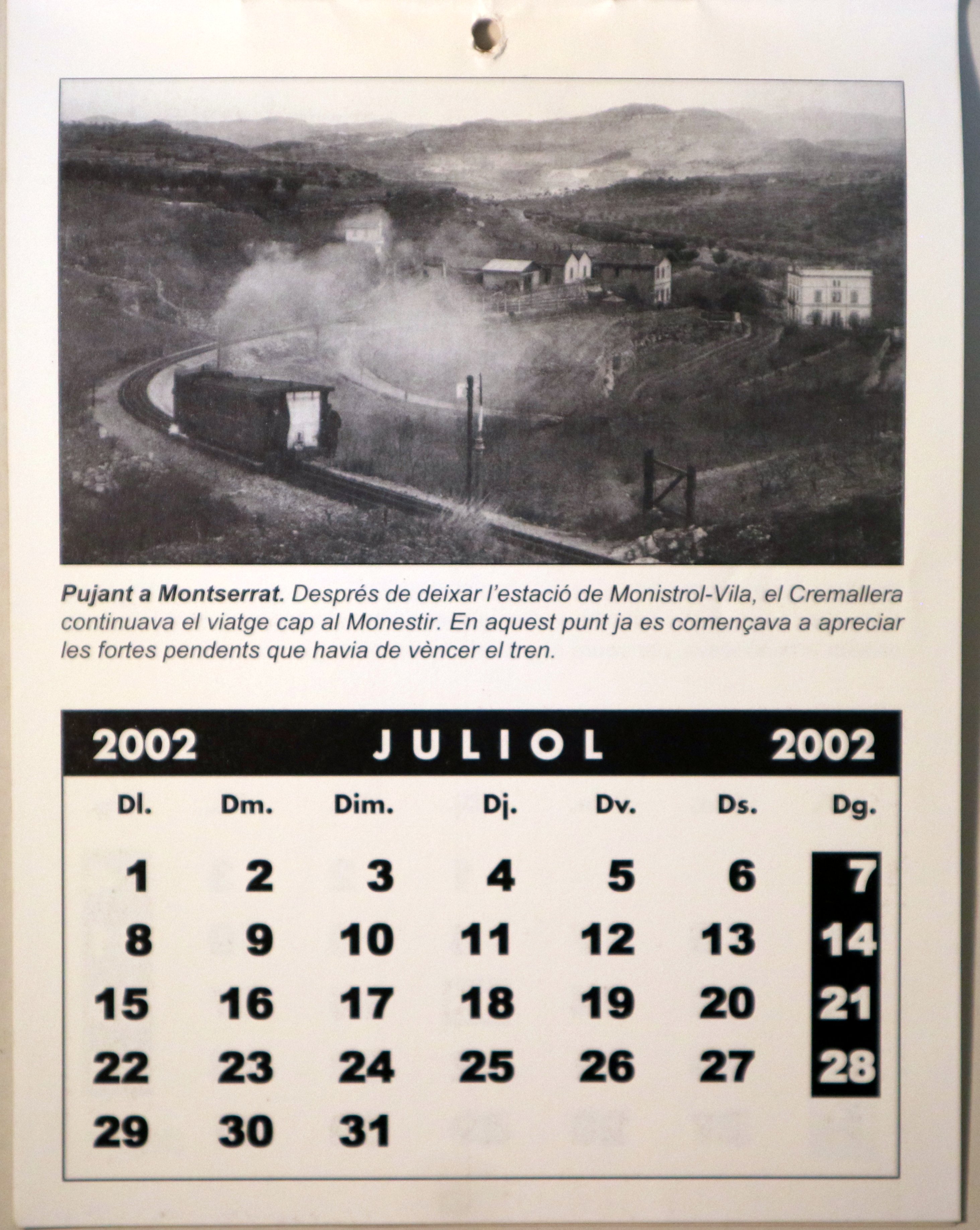 Monistrol de Montserrat, Amics del Cremallera de Montserrat, 2002. Calendari de gener a desembre de 2002. Fotografies en b/n. s/p. 8è. Rústica editorial il·lustrada. Molt bon exemplar.
