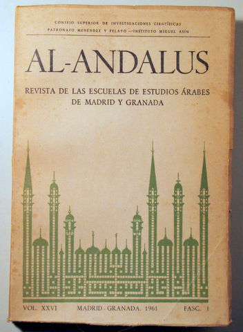 Madrid-Granada, Edit. CSIC - Instituto Miguel Asín, 1961. Revista de las escuelas de estudios árabes de Madrid y Granada. Ilustraciones en b/n fuera texto. Página desplegable. 501p. 8º mayor. Rústica editorial ilustrada levemente rozada. Buen ejemplar.