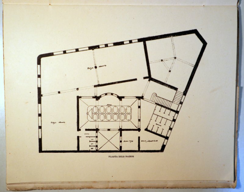 Barcelona, Edit. Ajuntament Barcelona, 1917. 10 fulls (sense paginar). Il·lustr. amb plànols en el text, 2 làm. fora del text. 4t. Rústica editorial amb les vores amb taques d'humitat. Interior en bon estat. Bon exemplar.
