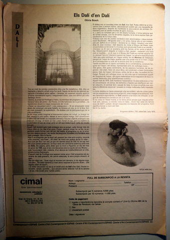 Barcelona, Edit. Espais, 1989. Nombroses il·lustracions en b/n. s/p. Foli. Rústica editorial il·lustrada. Vores un pèl gastades. Bon exemplar. Els Dalí d'en Dalí per Glòria Bosch. Escultura mallorquina actual. Dansa a Berlín per Cesc Gelabert. Etc.