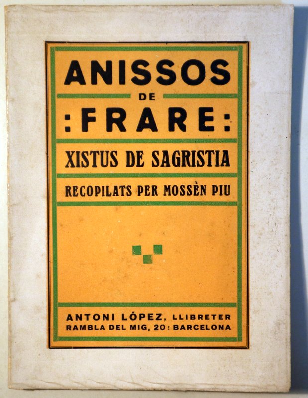 ANISSOS DE FRARE. XISTUS DE SAGRISTIA recopilats per Mossèn Piu - Barcelona s/d