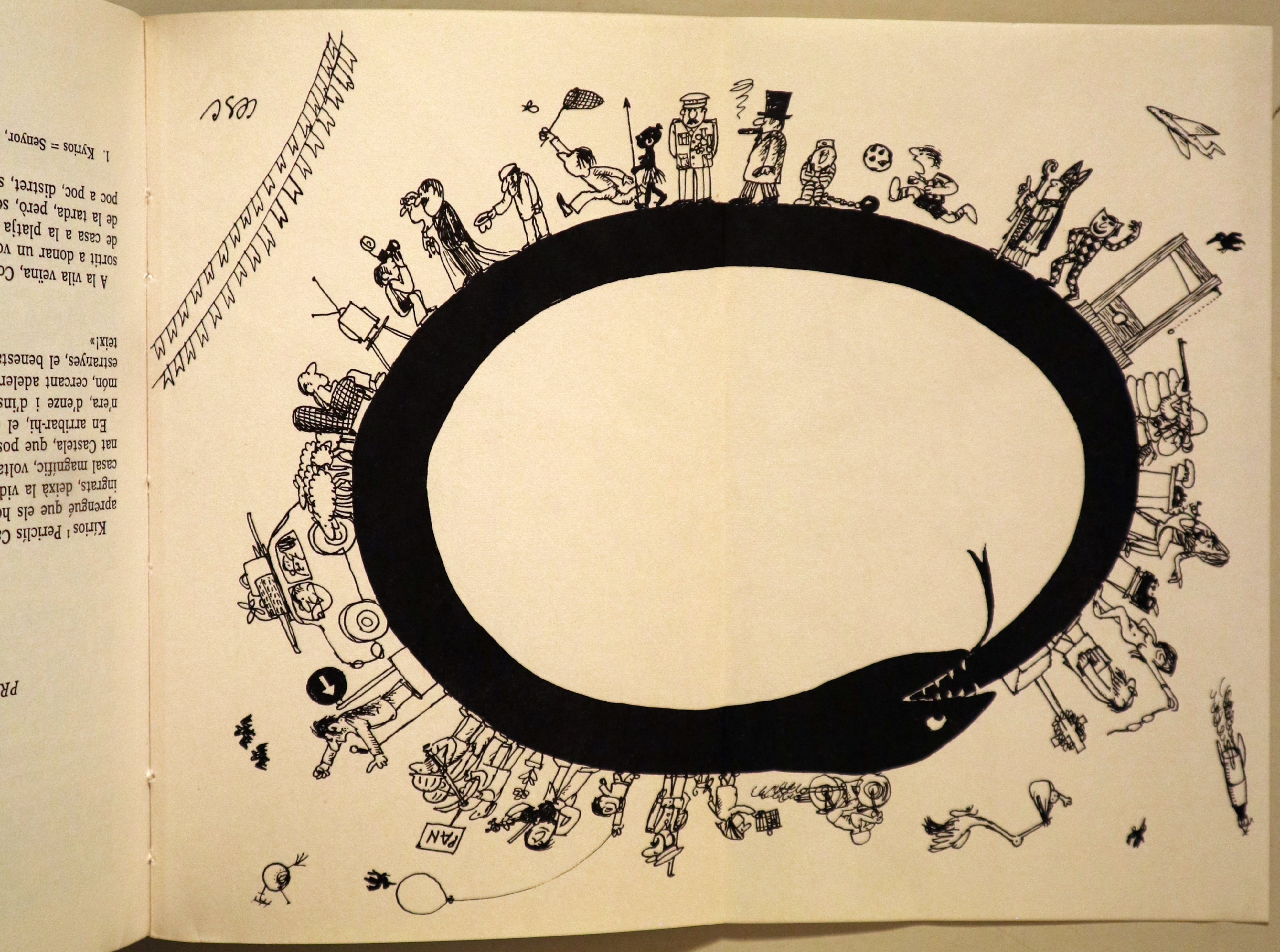 Barcelona, Editorial Selecta, 1978. Biblioteca Selecta, 496. Proses literàries, LXXVI. "Contes per a grans". Dibuixos de Cesc (amb la nova sèrie de dibuixos de Cesc "El món vist pels seus estrips". 309 p. 8è. Rústica editorial il·lustrada amb solapes. Molt bon exemplar. 1a edició. 1st edition.