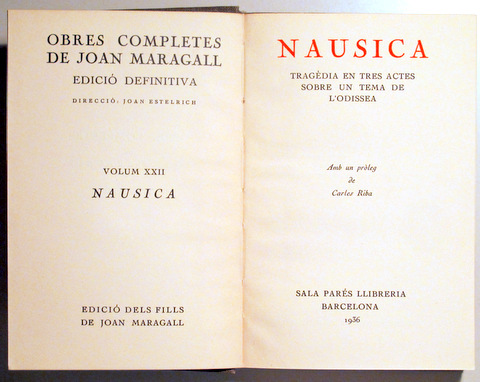 OBRES COMPLETES. Edició definitiva. Vol XXII. NAUSICA - Barcelona 1936