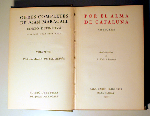 OBRES COMPLETES. Edició definitiva. Vol VII. POR EL ALMA DE CATALUÑA - Barcelona 1930