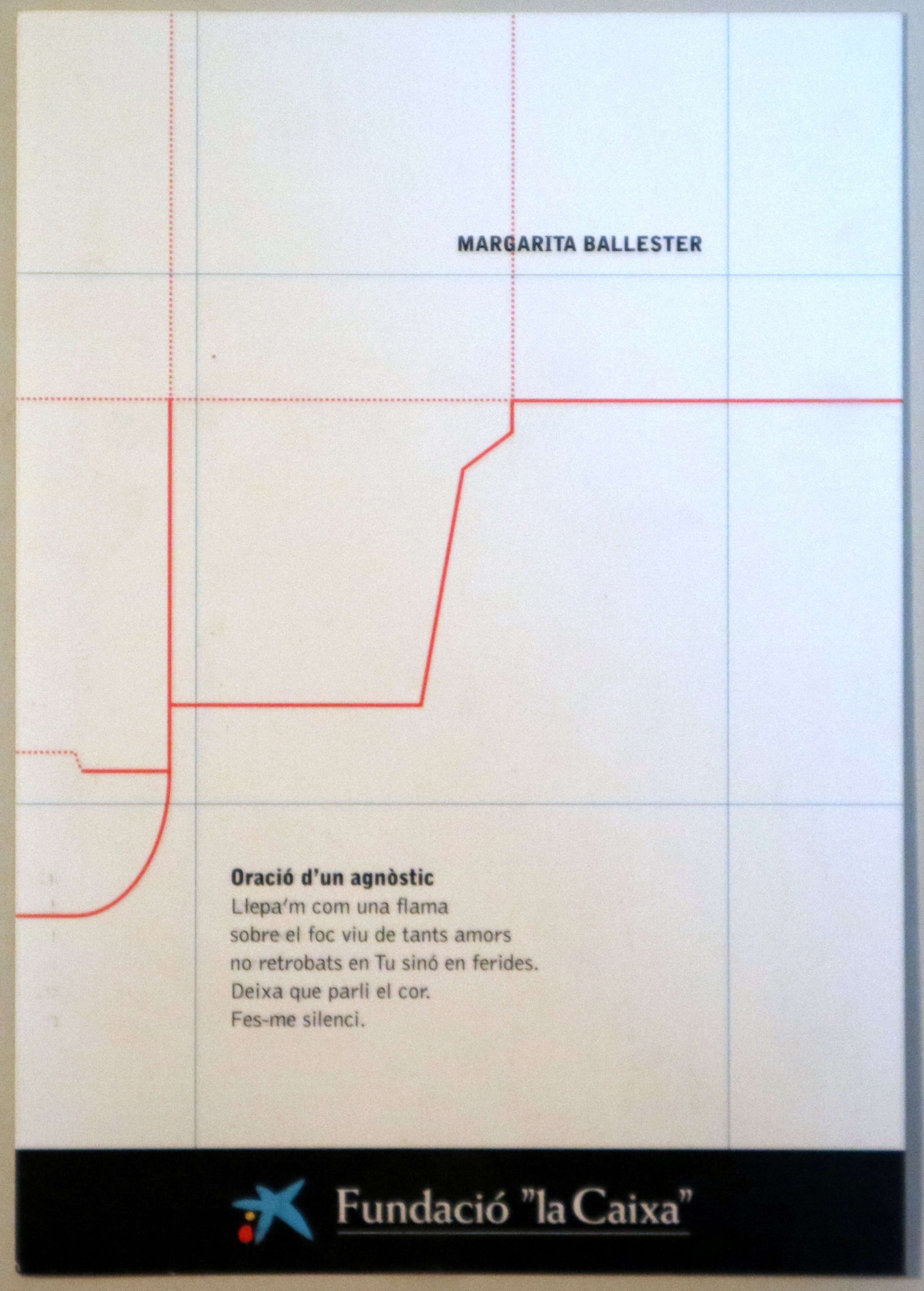 Vic, Fundació La Caixa - Cafè Central, 2002. Postal amb un poema de Margarita Ballester. Invitació a la presentació de la seva poesia dins el cicle Un pas a dos. 8è menor. Molt bon exemplar.