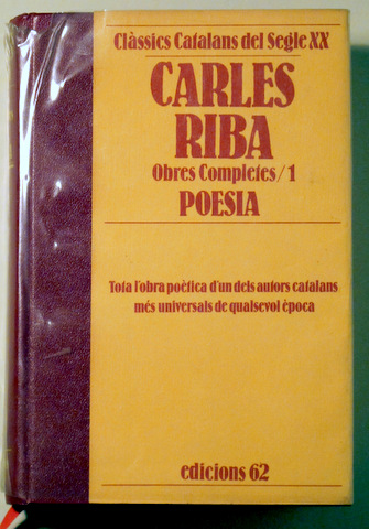 Barcelona, Edicions 62, 1984 - 1988. Clàssics catalans del segle XX. Volum I: Poesia. Edició a cura d' Enric Sullà. Pròleg d'Arthur Terry. 380 p. 1 f. Guaflex editorial amb protecció plàstica amb algunes arrugues. Molt bon exemplar.