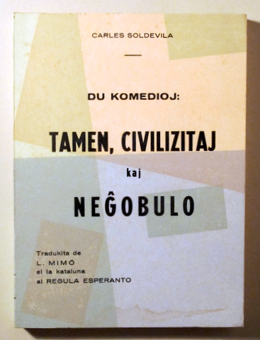 Barcelona, Edit. Riutort, 1975. Tradukita de L. Mimó al Regula Esperanto. 119 p. 8º. Rústica editorial il·lustrada. Molt bon exemplar. Traducció a l'esperando de dues comèdies de Carles Soldevila, entre les quals. Civilitzats tanmateix.