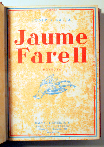 JAUME FARELL. Novel·la - Barcelona 1946 - 1ª edició.