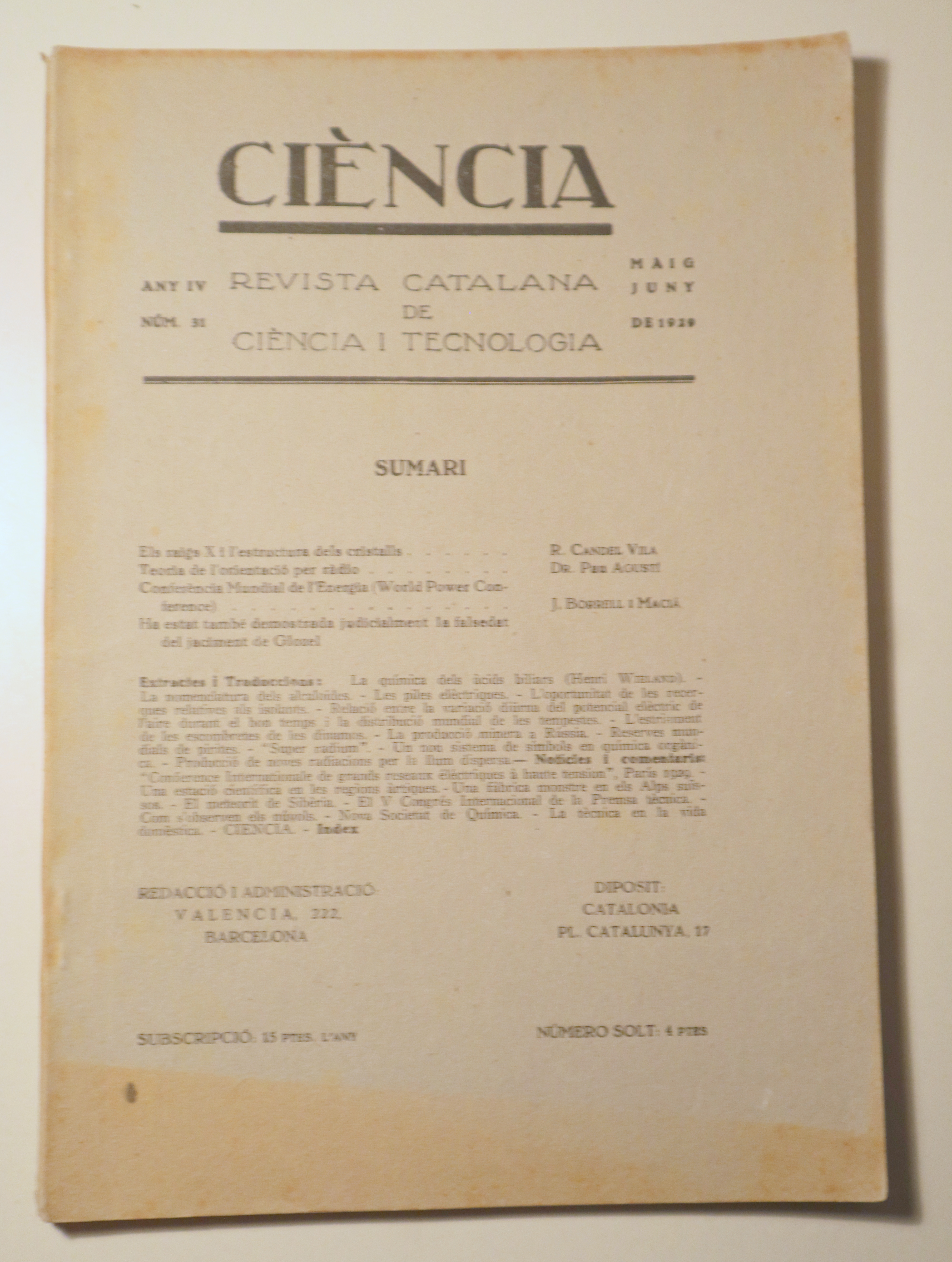 CIÈNCIA. Revista catalana de ciència i tecnologia nº 31, any IV - Barcelona 1929 - Il·lustrat