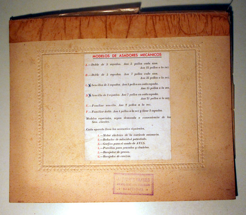 MODELOS DE ASADORES MECÁNICOS - Barcelona s/f - Ilustrado